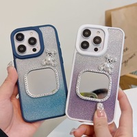 Hot Selling 2-in-1 stoßfest für iPhone 15/16 Handy hülle Glitzer spiegel Design TPU PC Kamera Objektivs chutz Make-up Spiegel